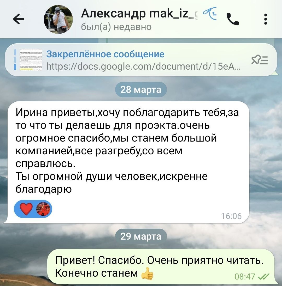 ▪ письменные рекомендации по ведению аккаунта, оформленные в Гугл документе. В них описываю, что делаете не очень, и как это исправить, что делаете хорошо, и как сделать отлично.